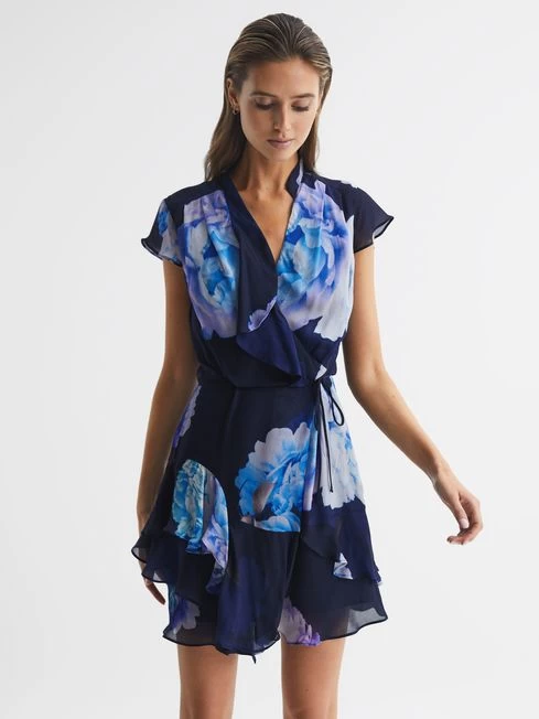The Macey dress is crafted from a lightweight fabrication that wraps loosely around the frame. A ribbon secures the dress and cinches the figure, for a feminine shape. Fluid cap sleeves and a V-neckline accentuate the mood. Complement the look with heeled sandals.