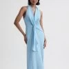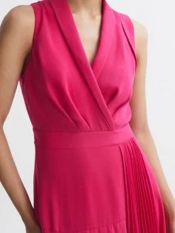 The Claire midi dress is meticulously tailored with evening events in mind. It’s designed with a wrap-style top and its fitted silhouette compliments the figure. Pleat detailing is added to the length for a feminine flair, and an asymmetric hem modernises the look. Wear with muted accessories for instant sophistication.