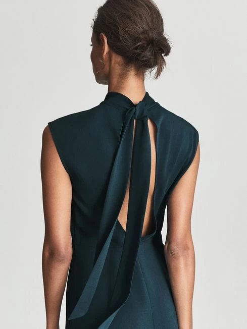 Take centre stage this season in the Livvy midi dress. This high-neck style features a striking open-back detail that fastens with a self-tie bow. Style this elegant number with delicate jewellery and heeled sandals for evening events.