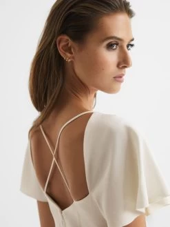 Cap sleeves are added for femininity, alongside a subtle pleat to the chest. The reverse features a cross-back detail.